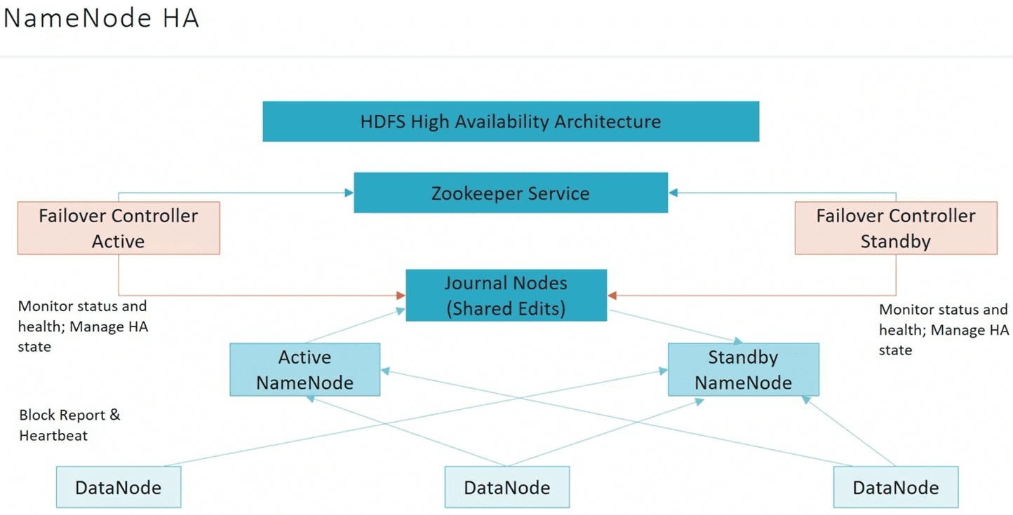 - fs image = paths + block ids + user + group + permissions / written in disk