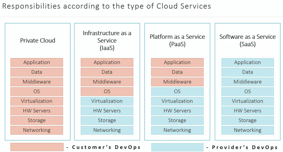 Responsibilities according to the type of Cloud Services